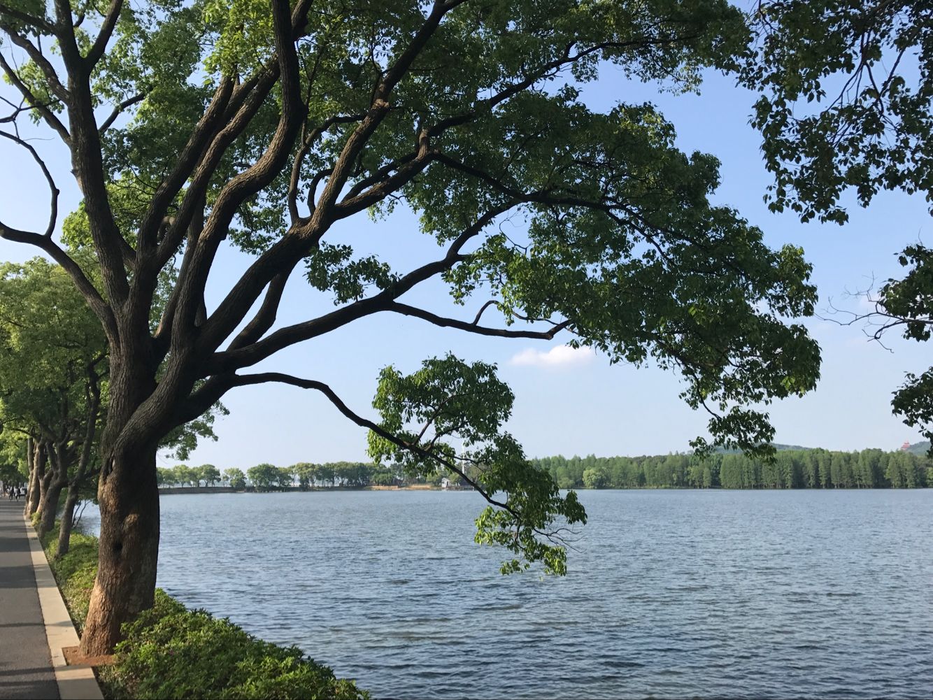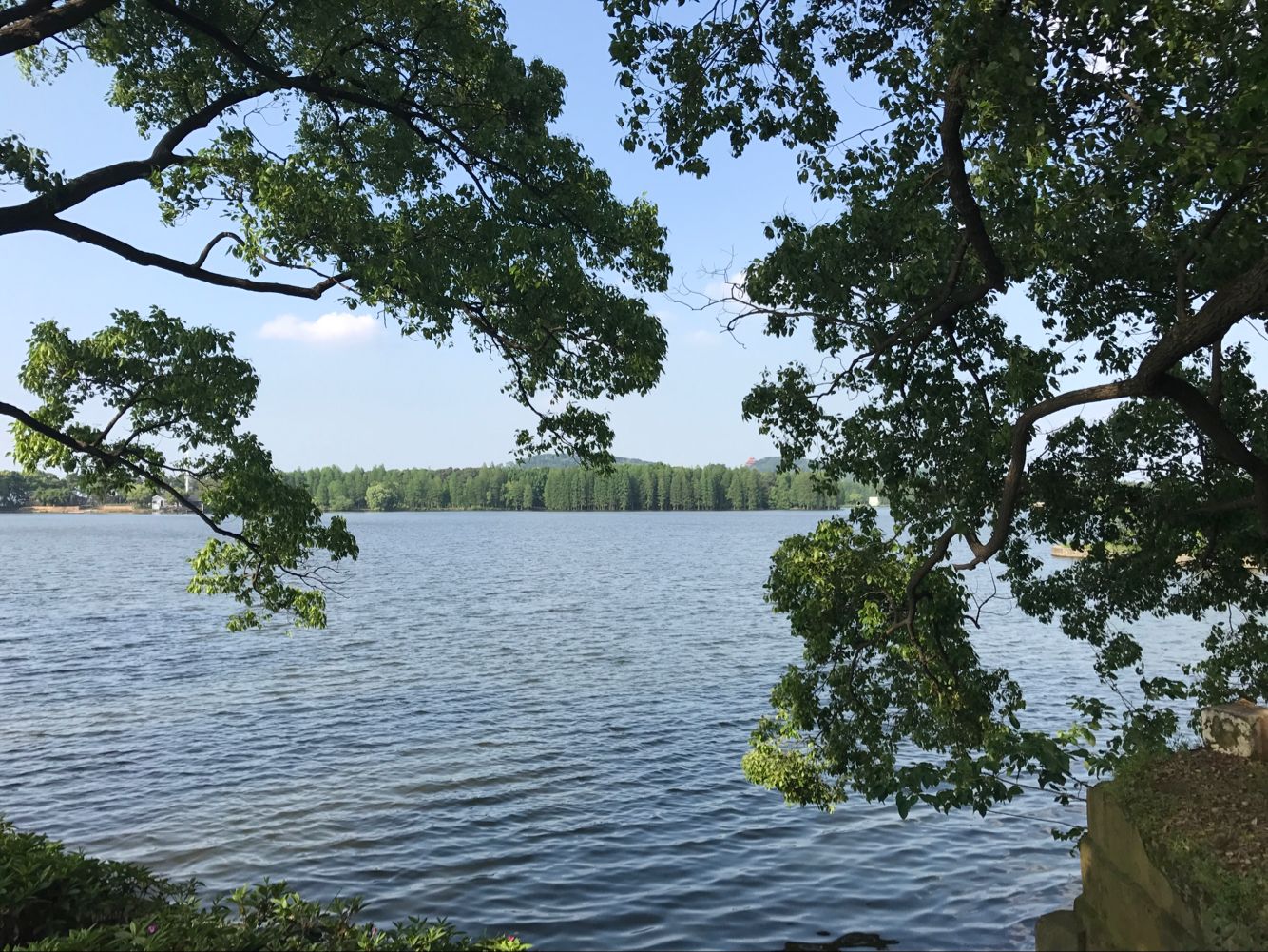 和煦、清麗,拂去春乏夏困,滿眼青山綠水蔓延著,美不勝收。大家摒棄平日工作的狀態(tài),置身事外,是一份難得的境遇。哪怕什么都不做,就這么靜靜的看著湖水你拍我打的樣子,心儀得很。